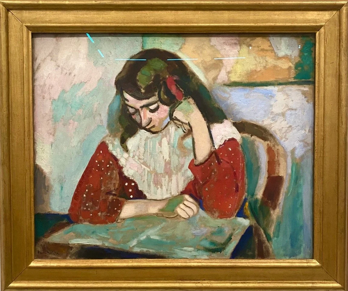Figure 8. Marguerite lisant, Matisse 1906 - her blue polka dot dress in Fig. 3 has become red polka dot here
