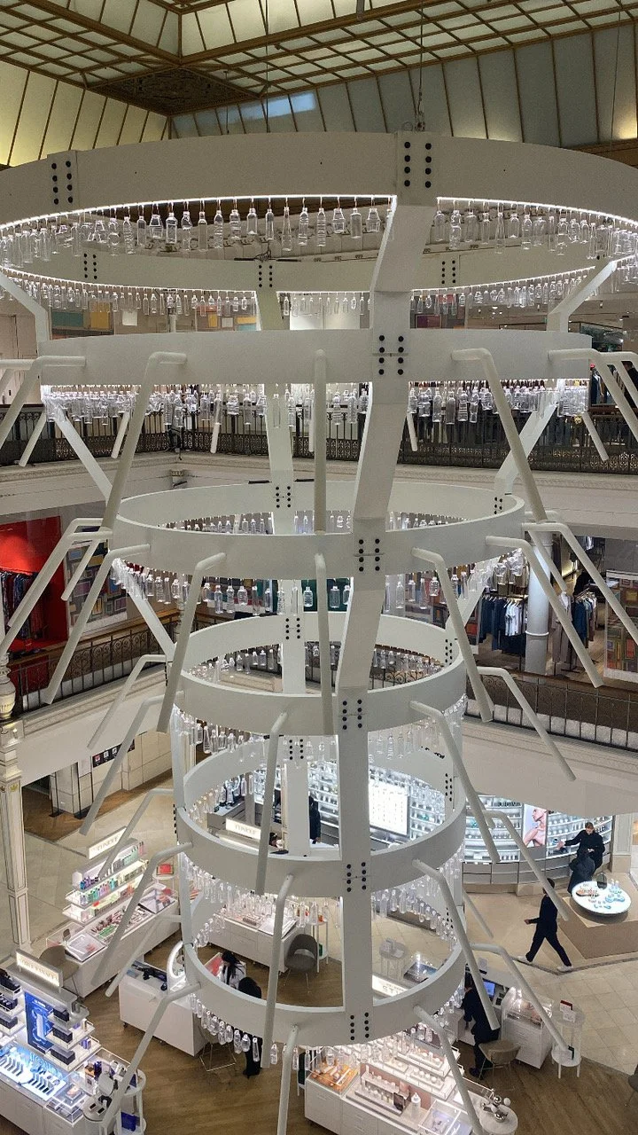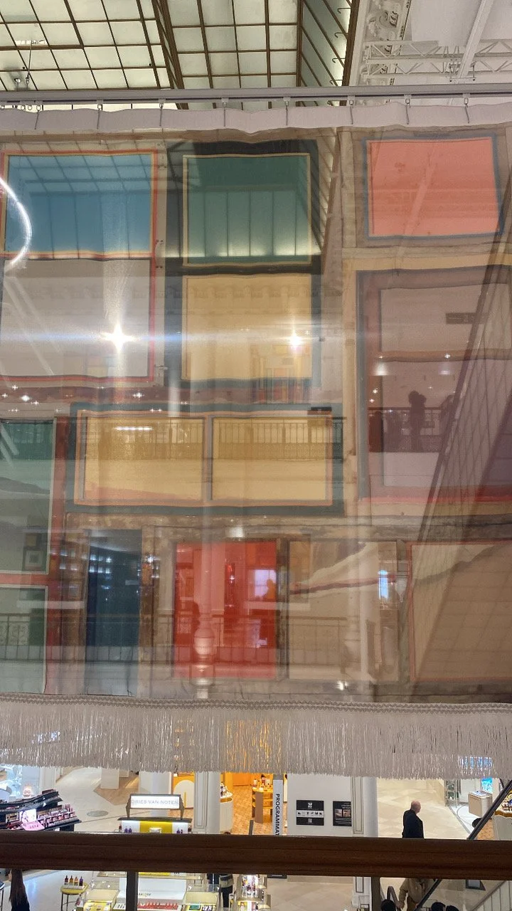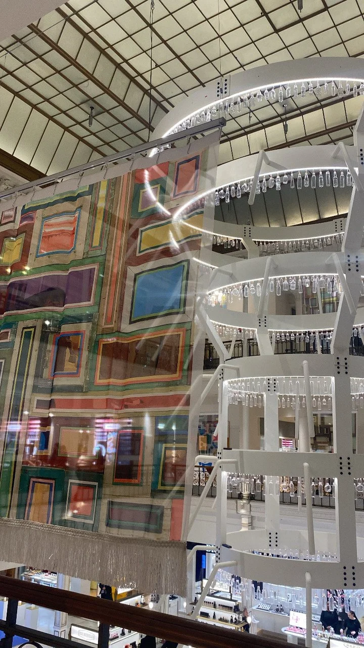 Today, we’re back to the exhibition I mentioned last week, at Le Bon Marché. Where, since 2016, a contemporary artist has been invited to fill the exterior windows, the grand central atrium and part of the second floor, during the annual January White Sale. Each guest artist creates an exhibition that is monumental enough to impress but not so overwhelming that it gets in the way of what people come to Le Bon Marché to do, shop.
