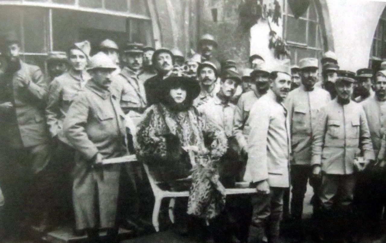 Figure 20. Sarah in a sedan chair to entertain the troops, 11 May 1916