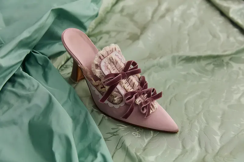 Figure 2. Sketches of shoes and shoes, Manolo Blahnik, Marie-Antoinette, V & A