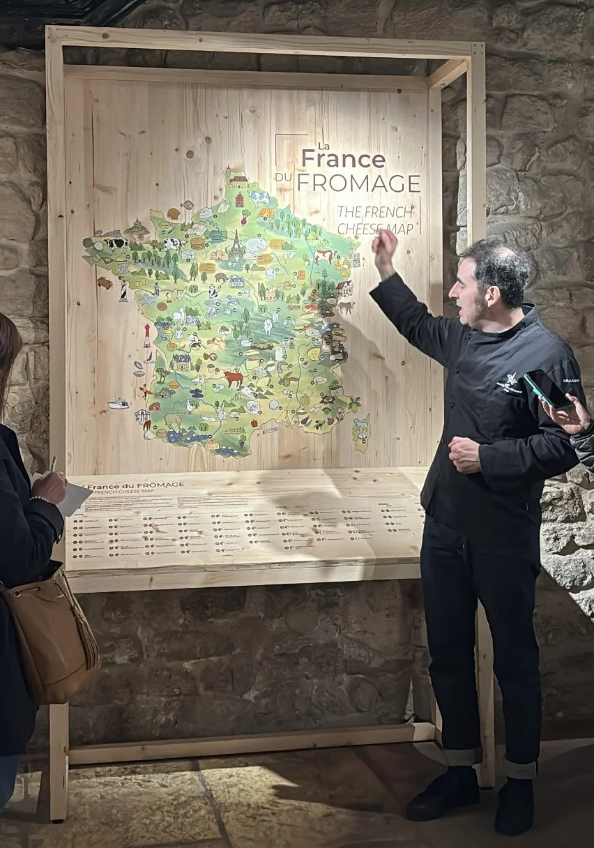 Figure 1. Our guide explaining where all the cheeses in France come from, Musée Vivant du Fromage, Paris