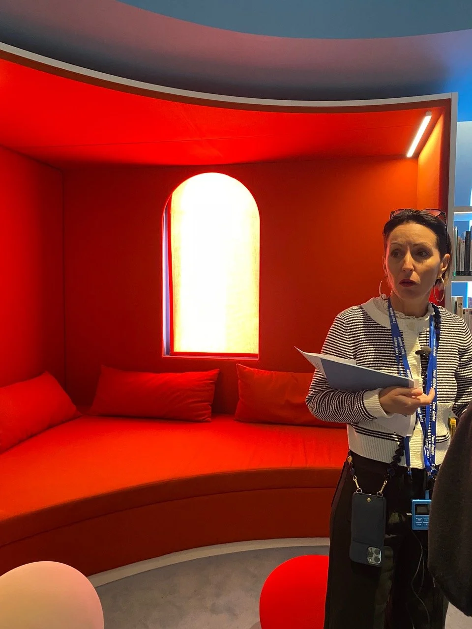 Figure 16. Our guide explaining just how easy it is to relax at Les Franciscaines