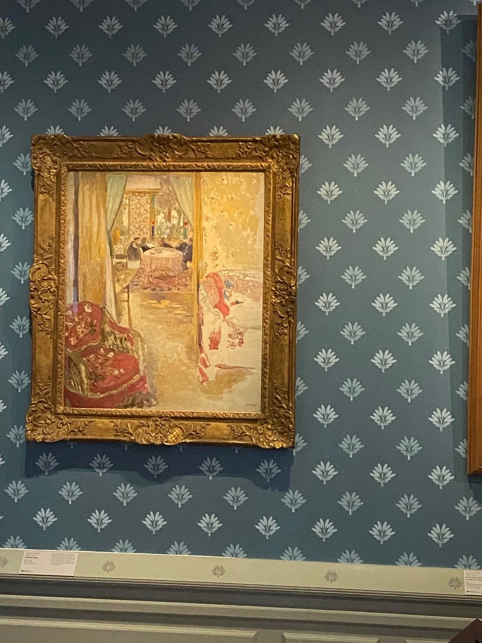 It was really too bad because the Villa du Temps Retrouvé in Cabourg was fabulous. When I had seen it in mid-February it was between exhibitions. It was a bare skeleton of what it looked like two weeks later, bursting with gorgeousness. We were late, but we were graciously welcomed. This time with coffee and cold beverages and patisseries (too bad the Franciscaines hadn’t gotten the memo). I spoke briefly with the director. Among other things, we talked about the furniture. Which they borrow from the same national storeroom as every other French museum. But since they want to make their visitors feel at home, they specify furniture that people can sit on. It’s amazing how being encouraged to sit on the furniture changes your perceptions. The main exhibition was on Jules Verne, a contemporary of Proust’s. There was a mini-exhibition on Edouard Vuillard (about whom I have written here: Paintings-have-patterns-people-have-problems ). I enjoyed it as much as I could, I have to return. (Figs 24 - 27)