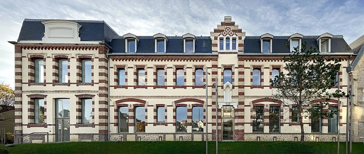 We were here to see an exhibition at Les Franciscaines, a former orphanage run by nuns of the Franciscan order (Franciscaines) which the city of Deauville took over in 2012. The transformation of the space into a cultural center with exhibition space, library, movie theatre, performance spaces, lounges, etc. began in 2014. It was set to open in June 2020. Bad timing. The pandemic postponed the opening for a year.
