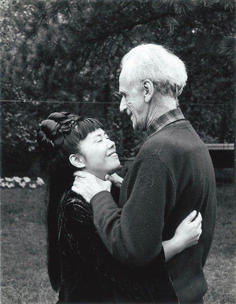 Figure 17. Joseph Cornell and Yayoi Kusama in the garden of his home on Utopia Parkway