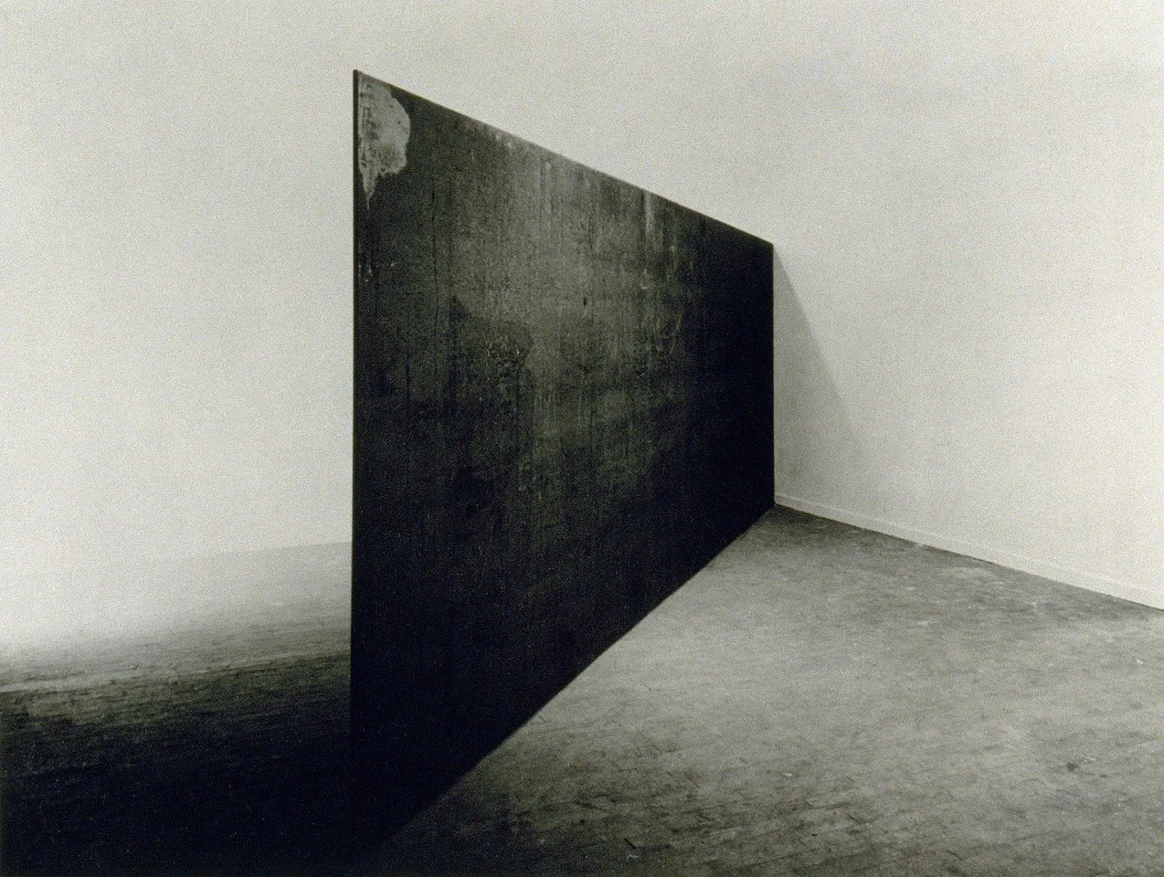 Serra’s friend, the composer Philip Glass, supported himself in the early days by working part time as a plumber. He introduced Serra to lead which, like rubber, was malleable but which, like steel, had weight and solidity. Serra started tearing and cutting and folding lead. He hesitated about working with steel because it “was such a traditional material…Picasso, González, Calder had all done great things with steel. But then I thought, Well, I can use steel in the way industry uses it—for weight, load bearing, stasis, friction, counterbalance. I knew something about steel, so why not?”