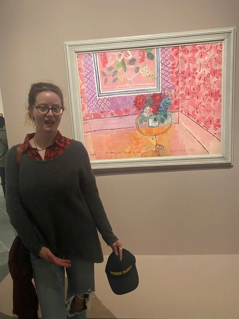 Ginevra enjoying herself in front of a painting by Raoul Dufy, 30 ans ou la Vie en rose, 1931