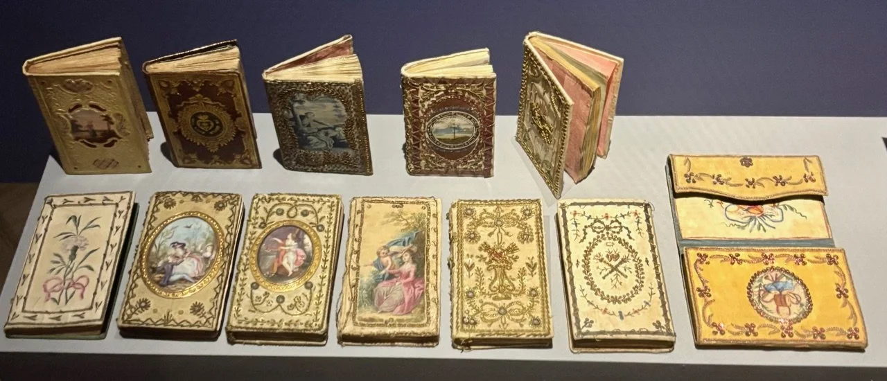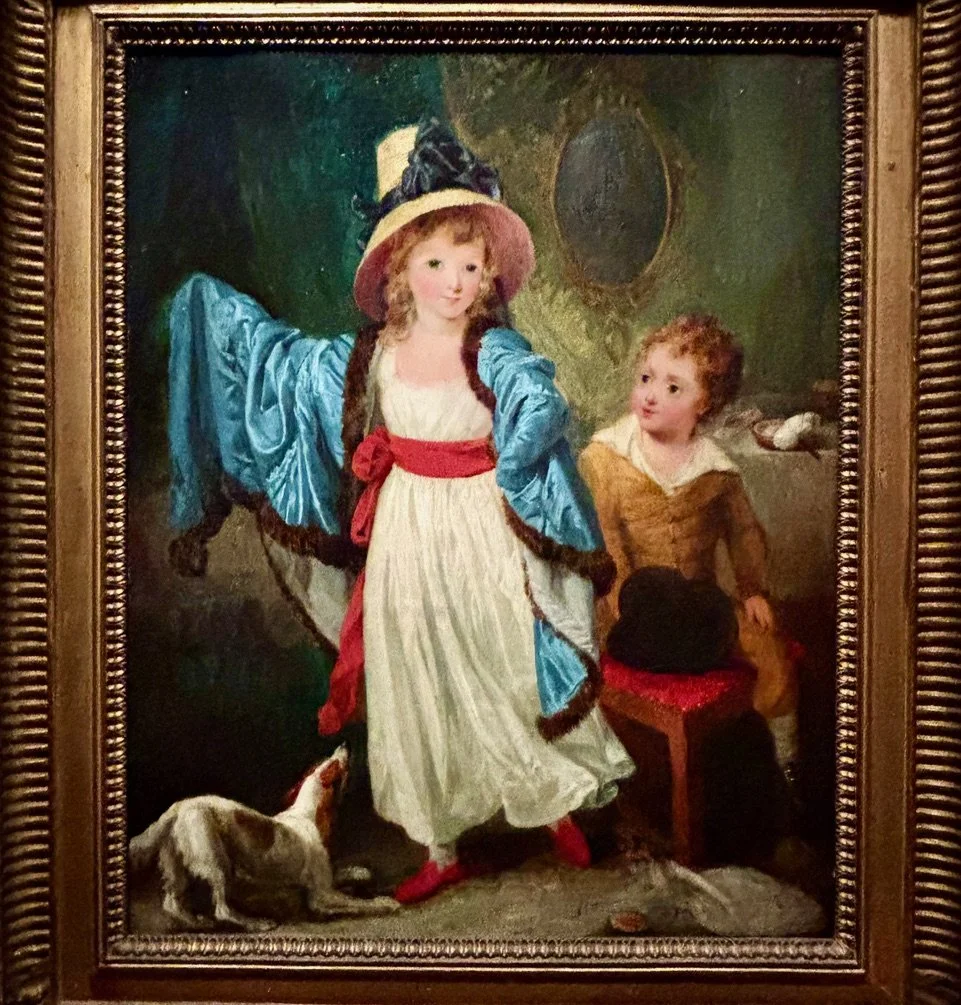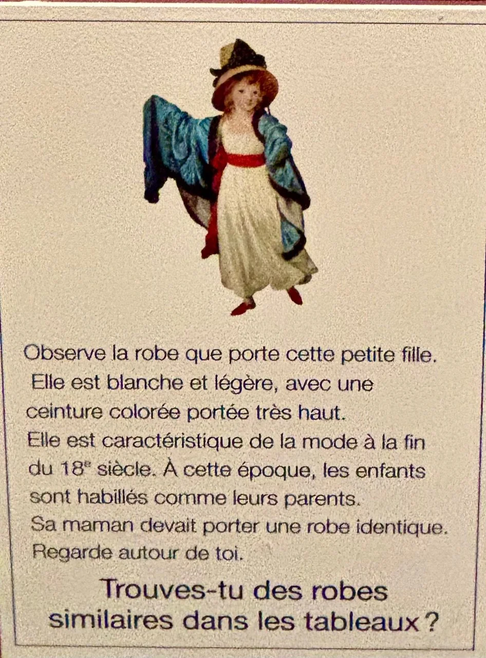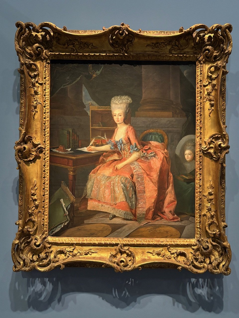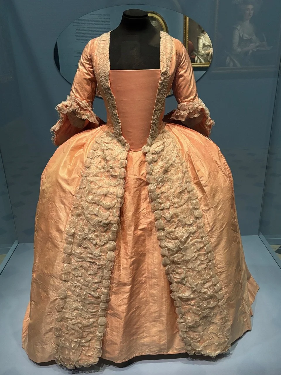 The initial images in the exhibition are portraits of individual women, mostly in interiors, mostly seated - at a desk, pen in hand; on a chair, holding a book. The space is tight, the accessories are limited. Books and pens confirm a certain level of education. We know the name of the sitter and the name of the artist. But we don’t know the name of the couturièr/e (dressmaker). How different from our own times when we know a designer’s name but not until there’s an exhibition of the designer’s work, do we find out who a couture gown was designed for. Were couturières acknowledged for the fabrics they selected in the 18th century, I don’t know. Painters were certainly celebrated for capturing the textures of those fabrics, whether velvet, taffeta, satin or fur. (Figs 24-26)