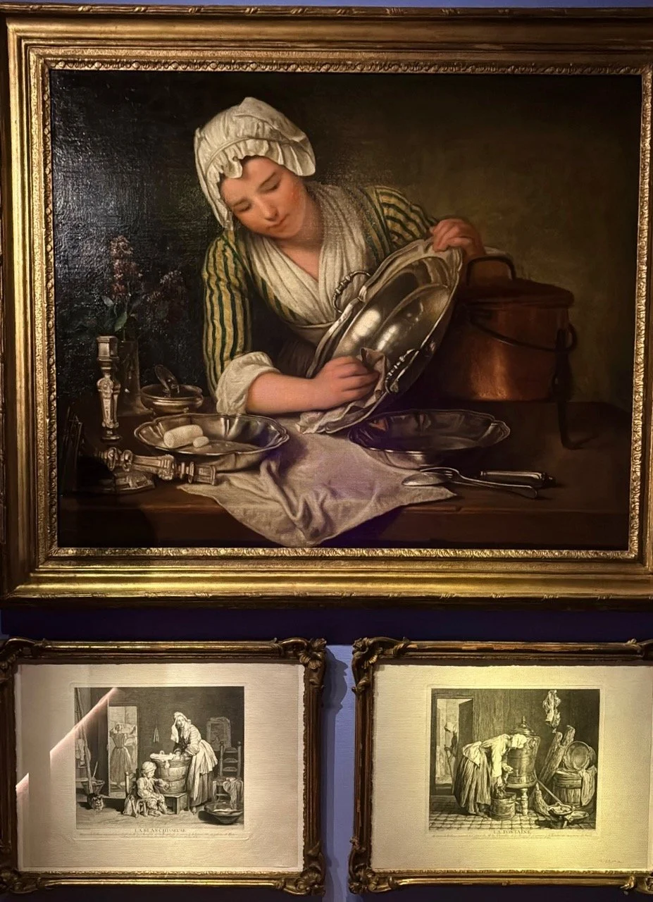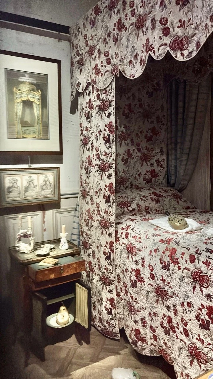 As you pass along the corridor, each room has the furniture, decorative objects and useful ones appropriate to it and the clothes that would have been worn in it. Everything is described, each function is explained. Paintings and prints depict people in similar spaces doing comparable things which further enhances our understanding of their purpose.