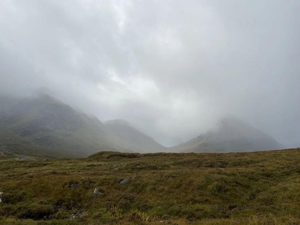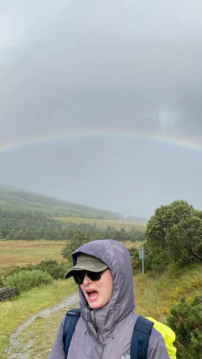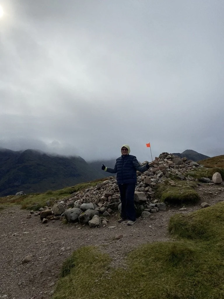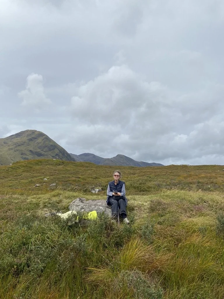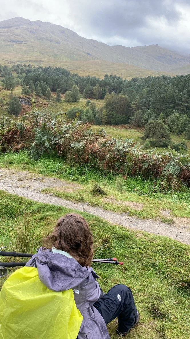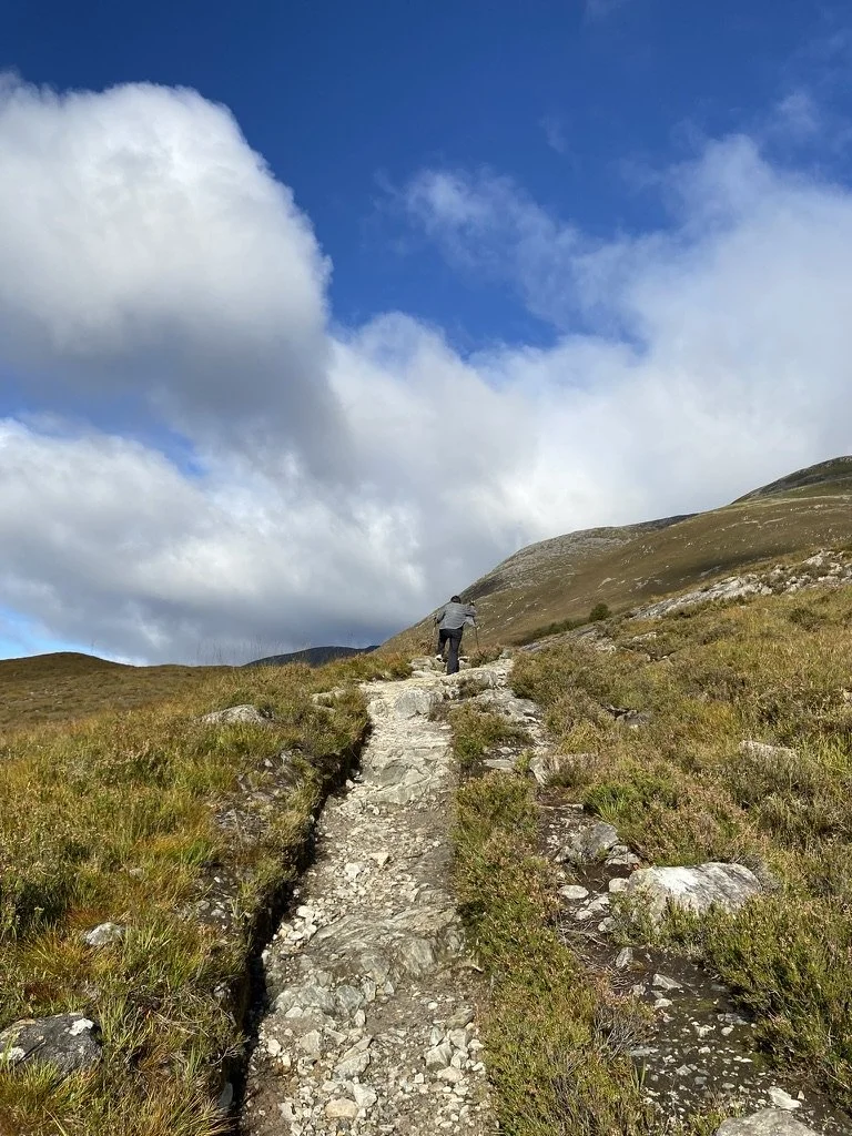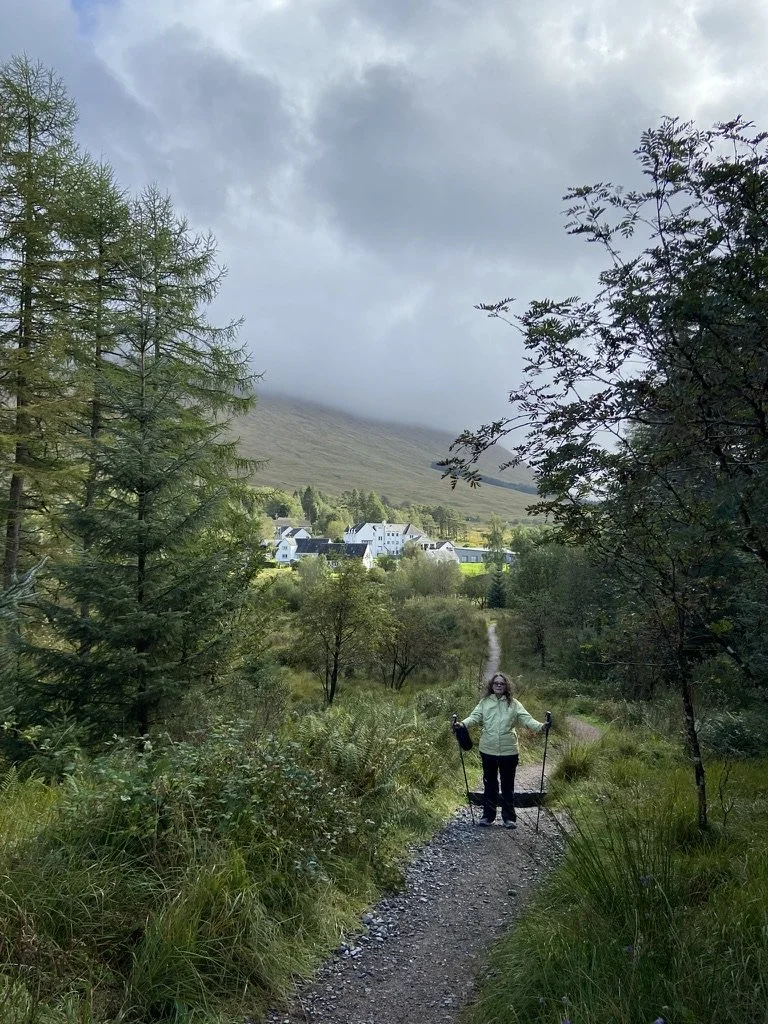 19 September: Inveroran to Kingshouse: As we set out on this walk a group of female deer crossed the path very cautiously and extremely elegantly. I felt a bit guilty having eaten venison sausage the night before. This walk took us out onto the moors which I loved which was way Wuthering Heights. We took a break for lunch and looked out over the vast scenery and then I went on a side quest on my own to find a wee place to take a wee wee. Well I wanted privacy so I had to venture out a bit and I finally found a rock formation that felt promising but when I got up I wasn’t really sure where I had left Mom! Luckily there was another lady who had been sat nearish us and I could see her jacket. Very thrilling! When I found Mom she told me she had looked down at her phone and then had looked up and I was completely gone. I blended in with the scenery!! We arrived at Kingshouse too early to check in which made me mad because I would have liked to have done more frolicking on the moors.