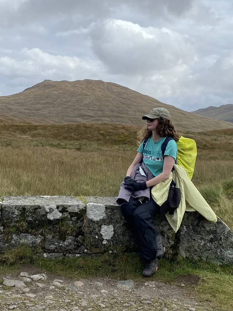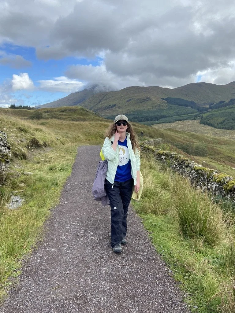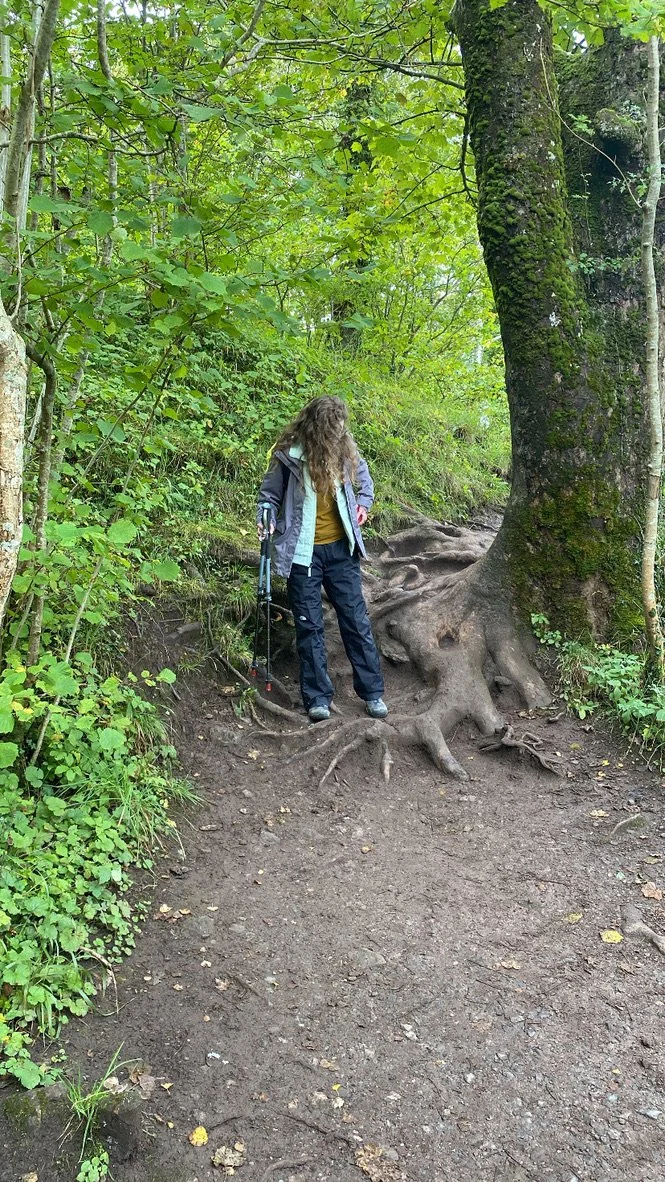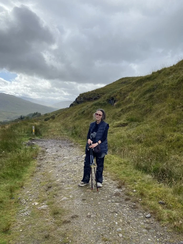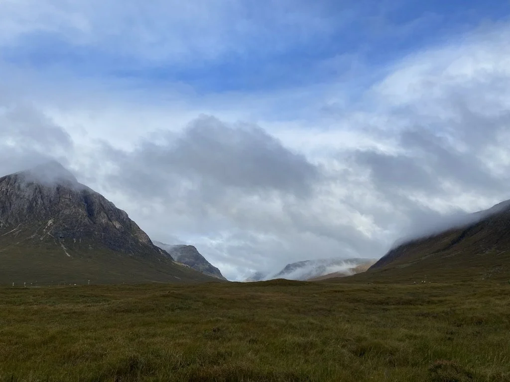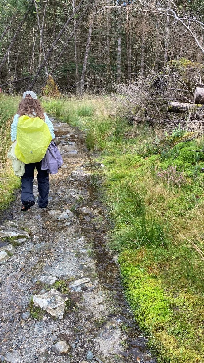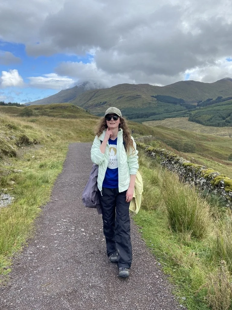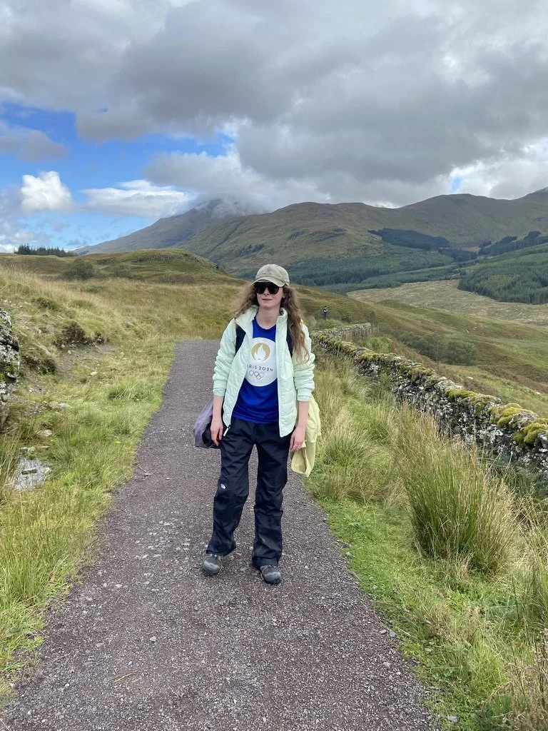 19 September: Inveroran to Kingshouse: As we set out on this walk a group of female deer crossed the path very cautiously and extremely elegantly. I felt a bit guilty having eaten venison sausage the night before. This walk took us out onto the moors which I loved which was way Wuthering Heights. We took a break for lunch and looked out over the vast scenery and then I went on a side quest on my own to find a wee place to take a wee wee. Well I wanted privacy so I had to venture out a bit and I finally found a rock formation that felt promising but when I got up I wasn’t really sure where I had left Mom! Luckily there was another lady who had been sat nearish us and I could see her jacket. Very thrilling! When I found Mom she told me she had looked down at her phone and then had looked up and I was completely gone. I blended in with the scenery!! We arrived at Kingshouse too early to check in which made me mad because I would have liked to have done more frolicking on the moors.
