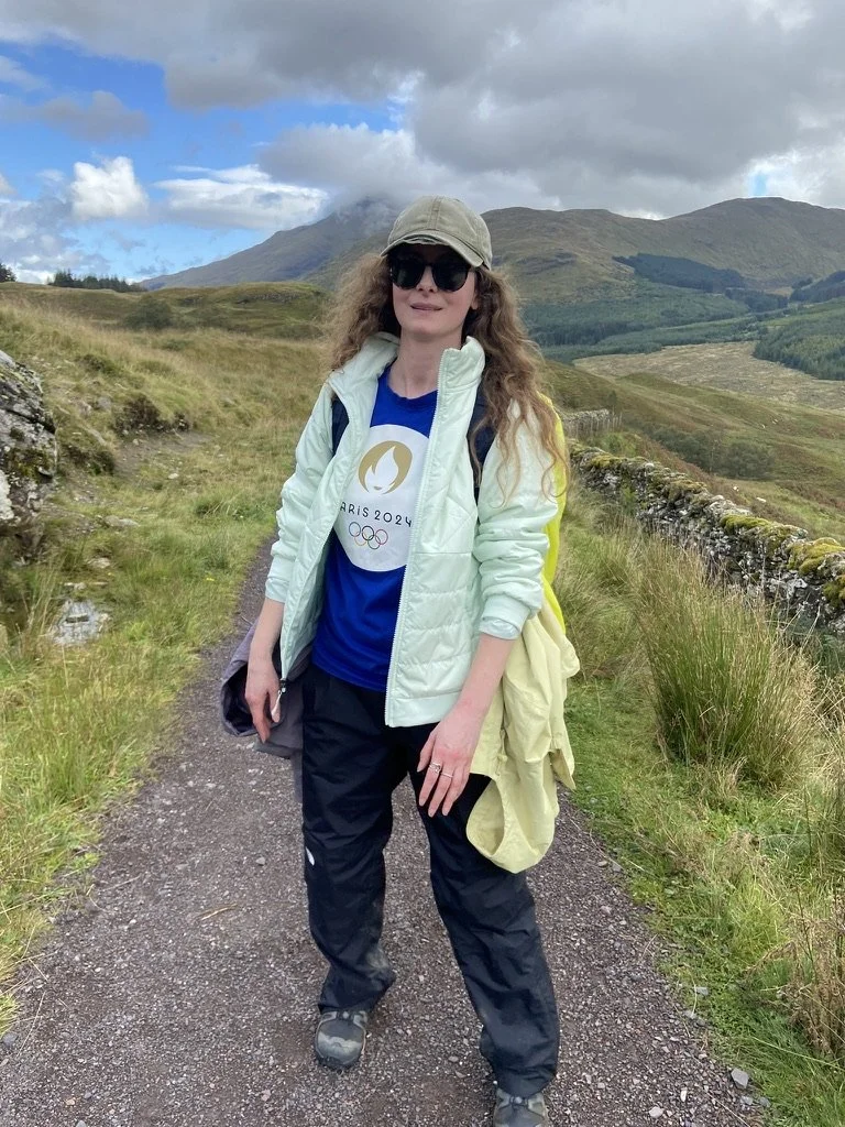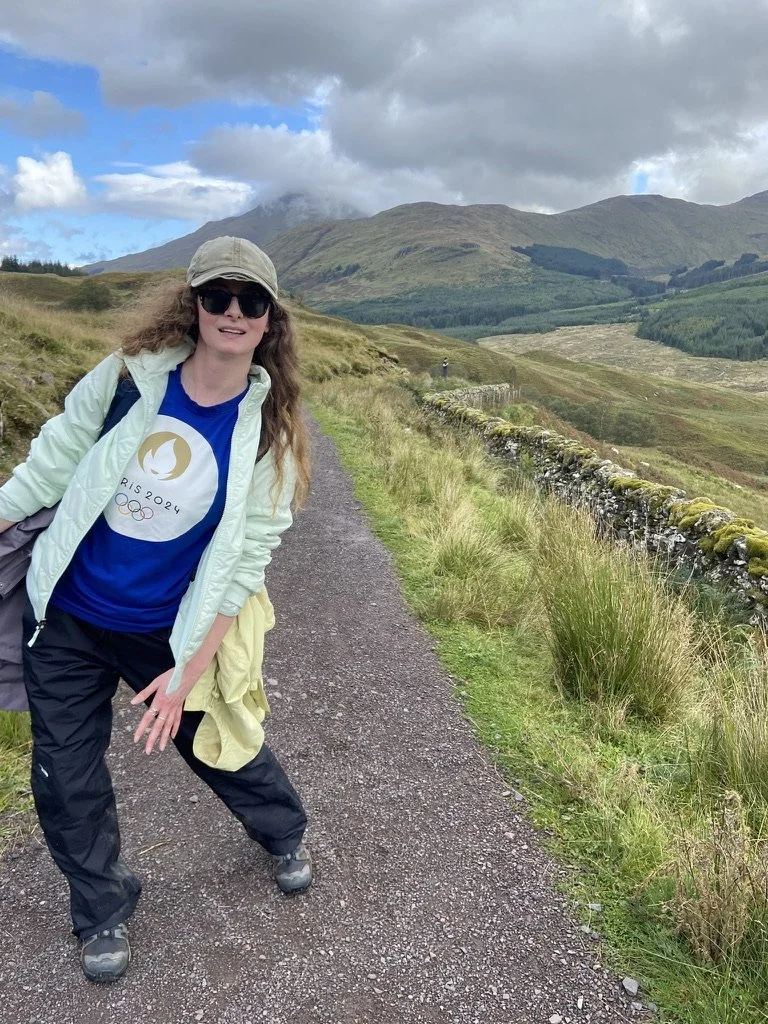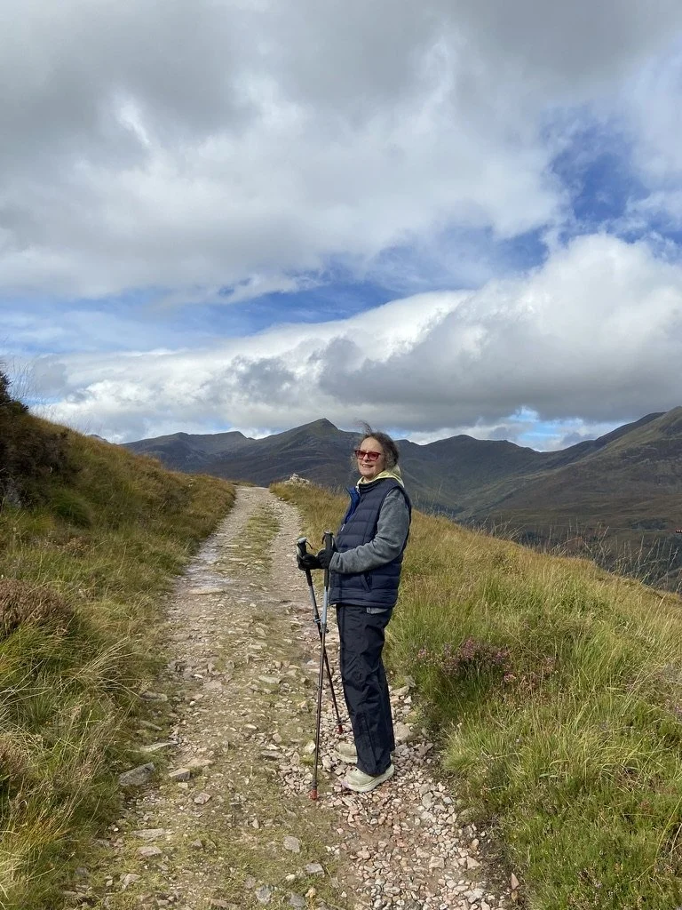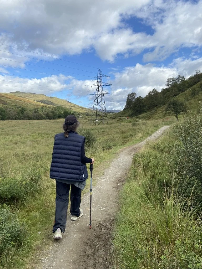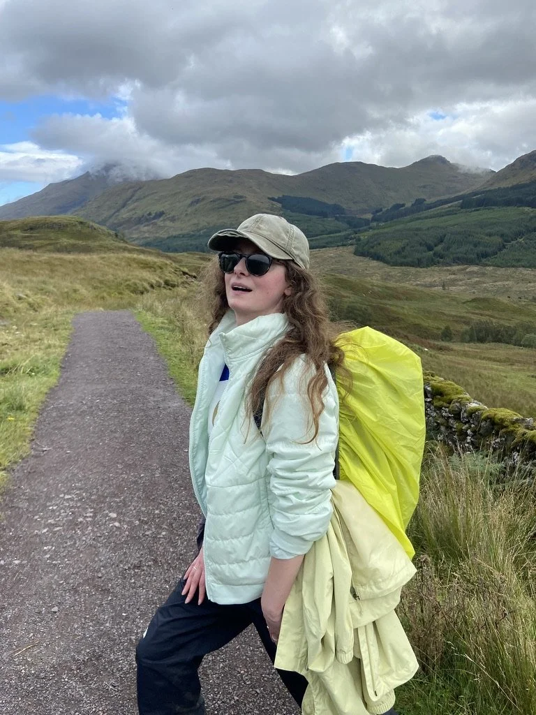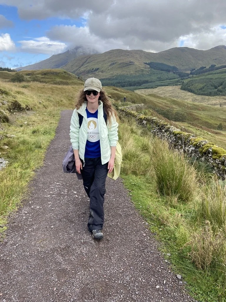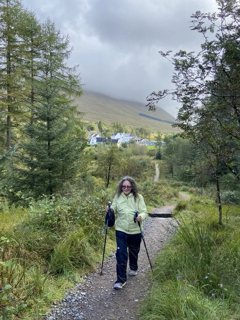 19 September: Inveroran to Kingshouse: As we set out on this walk a group of female deer crossed the path very cautiously and extremely elegantly. I felt a bit guilty having eaten venison sausage the night before. This walk took us out onto the moors which I loved which was way Wuthering Heights. We took a break for lunch and looked out over the vast scenery and then I went on a side quest on my own to find a wee place to take a wee wee. Well I wanted privacy so I had to venture out a bit and I finally found a rock formation that felt promising but when I got up I wasn’t really sure where I had left Mom! Luckily there was another lady who had been sat nearish us and I could see her jacket. Very thrilling! When I found Mom she told me she had looked down at her phone and then had looked up and I was completely gone. I blended in with the scenery!! We arrived at Kingshouse too early to check in which made me mad because I would have liked to have done more frolicking on the moors.