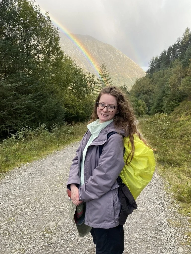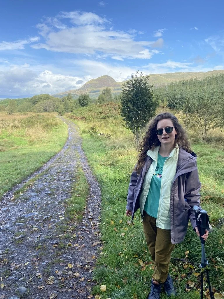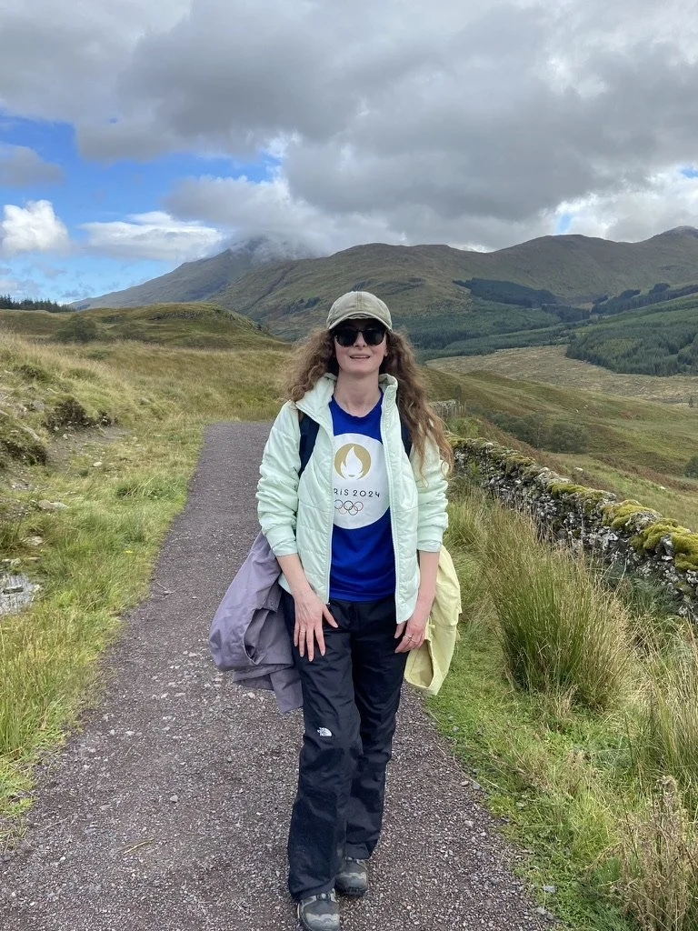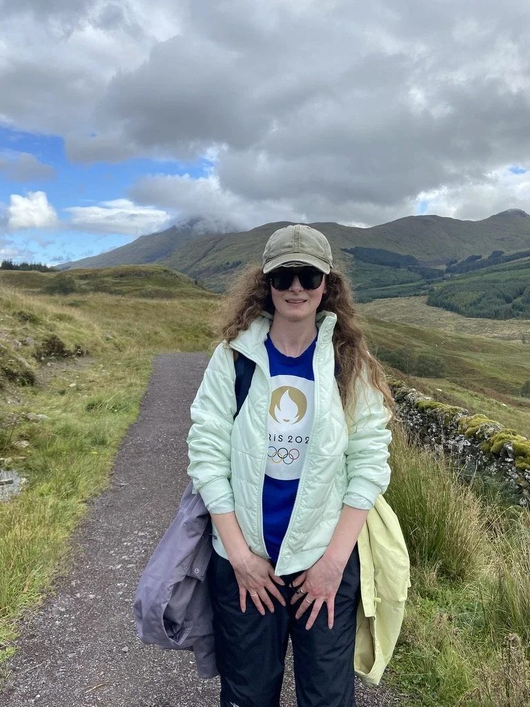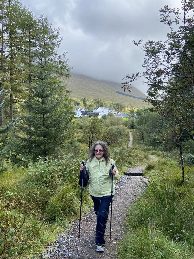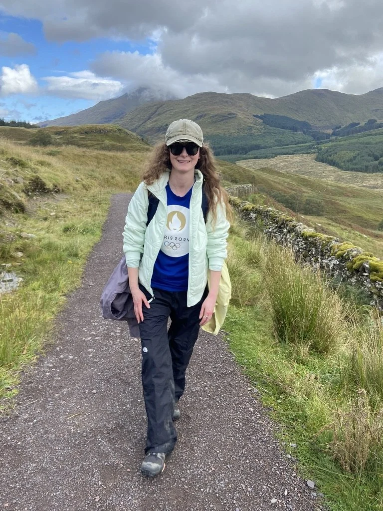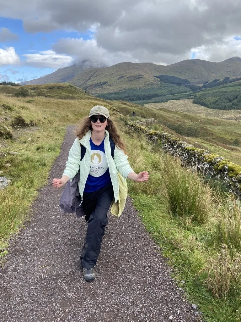 19 September: Inveroran to Kingshouse: As we set out on this walk a group of female deer crossed the path very cautiously and extremely elegantly. I felt a bit guilty having eaten venison sausage the night before. This walk took us out onto the moors which I loved which was way Wuthering Heights. We took a break for lunch and looked out over the vast scenery and then I went on a side quest on my own to find a wee place to take a wee wee. Well I wanted privacy so I had to venture out a bit and I finally found a rock formation that felt promising but when I got up I wasn’t really sure where I had left Mom! Luckily there was another lady who had been sat nearish us and I could see her jacket. Very thrilling! When I found Mom she told me she had looked down at her phone and then had looked up and I was completely gone. I blended in with the scenery!! We arrived at Kingshouse too early to check in which made me mad because I would have liked to have done more frolicking on the moors.
