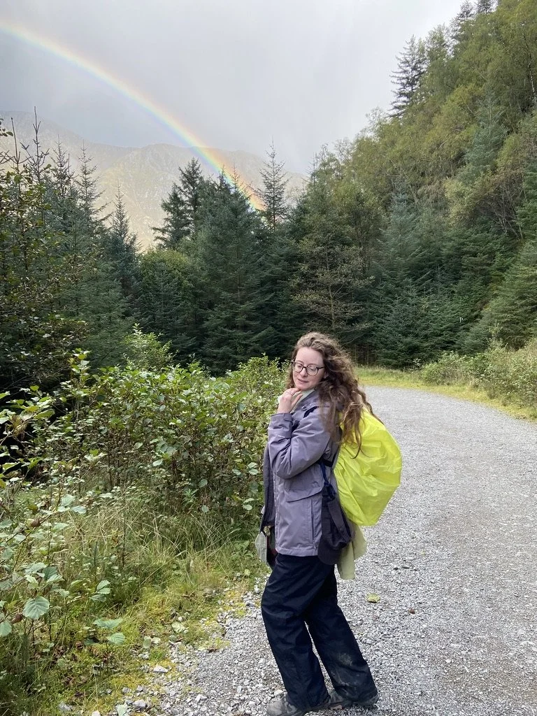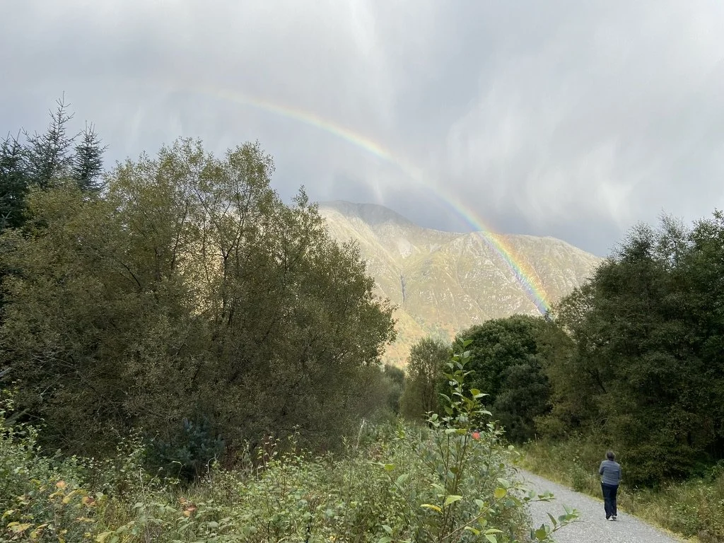 21 September Kinlochleven to Fort William: The final day. and boy was this a long one!! All the beautiful views and going up and down and around and the temperature changed a hundred and two times and it just kept going and I was having so much fun just walking and looking about and sitting down and eating nuts and dried fruit and just having a marvelous time being out in the middle of nowhere but on a path with a destination. This was the walk where we chatted with a sheep farmer who told us that an abandoned building that looked so nice used to have American hippies in it (probably from San Francisco I thought). And at the end of the walk there was a giant rainbow and it was so so gorgeous, just straight out of that painting I told you about in the de Young!