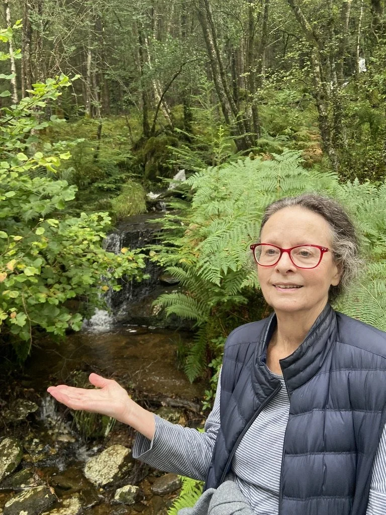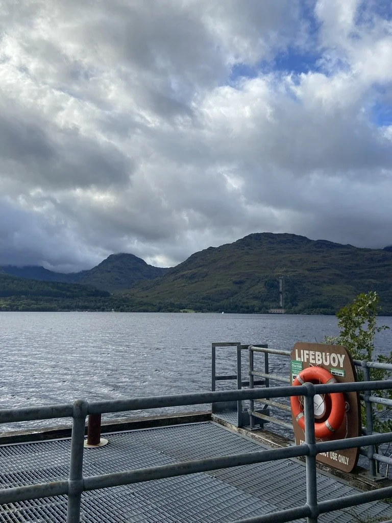 13 September: Dryman to Balmaha: This part of the walk was also very foresty which is my way of telling you that I found lots of places among the ferns to “pop a squat” (private places to pee). Which was necessary since there are no cafes or public toilets on the Way, but also my preferred method of communing with nature. We did have a serious discussion with an older Scotswoman walking her dogs, about Conic Hill, which she recommended that we skip, which (to Mom’s relief) we did. Arriving in Balmaha was lovely, the village was cute and so was the cottage in which we stayed right along the water (although it required lugging our suitcases up a very steep set of stairs.) The restaurant had the weirdest food and the waitress was the most unpleasant person we ran across our entire trip. One item on the menu that left an impression on us was Korean BBQ chicken burger with harissa mayonnaise. I was like hello, where am I? For the rest of our walk on the Way, any time I felt hungry I would say to mom, “I could really use a Korean BBQ chicken burger with harissa mayonnaise right now.” And then we would eat a few nuts or some dried fruit.