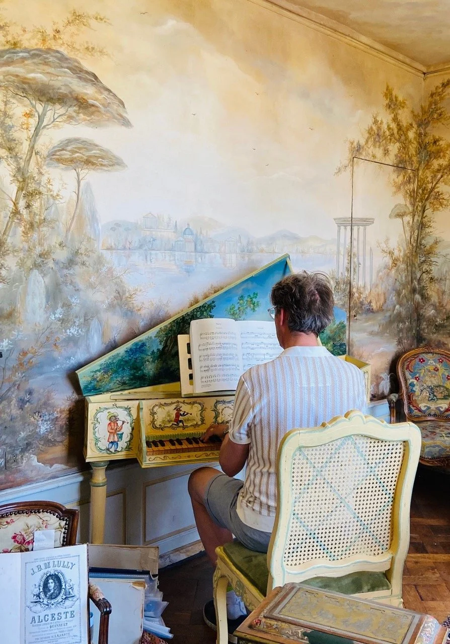 On the ground floor of this chateau, which is inhabited on the upper floors by the family, everything that the owners are happy for you to see is stuffed into a few stuffed rooms. According to its Wikipedia entry (surely written by a member of the Vendeuvre family), each room presents a theme of daily life: the art of entertaining in the dining room, the art of dressing in the master bedroom, the art of writing in the study, the art of portraiture in a small living room, the pleasures of games in the guest room. Automatons and miniatures are scattered about and relate directly to the theme of each room. The decor and period furniture are intended to transport the visitor back to the daily life of an 18th century noble family. In an alcove off one room, someone was playing a pianoforte, maybe the current Count de Vandeuvre. He didn’t introduce himself, I didn’t introduce myself either. When I commended him on his playing, he identified the pieces and told me that he was practicing for a concert series that was to be held at the chateau in September.