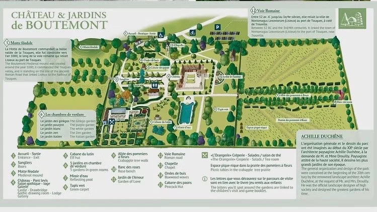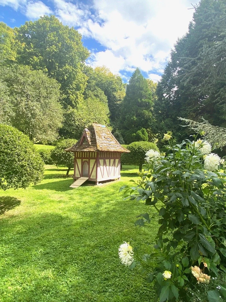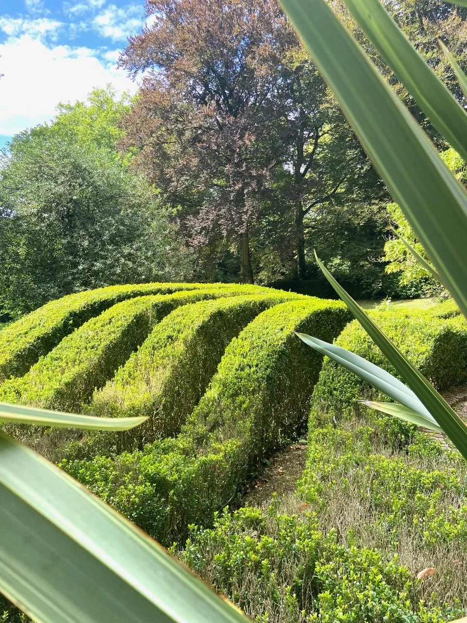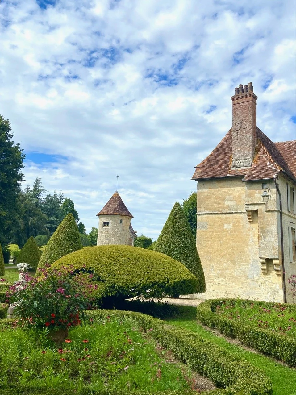 After the war, the chateau changed hands a few more times. There was a single owner from 1976 until 2020, willing to jump on the treadmill and continue the never-ending task of restoration and reinvention. They spruced up the old gardens (pond and fountain and topiary garden) and created new ones (Italian garden and boxwood waves). Since 2020, the new new owners have restored three rooms of historical interest in the chateau and with three gardeners, they have created four new gardens, including a Zen garden and a ginkgo garden. And they added signage. The signage is excellent, it made finding my way from one garden to another a breeze! (Figures 2-12)