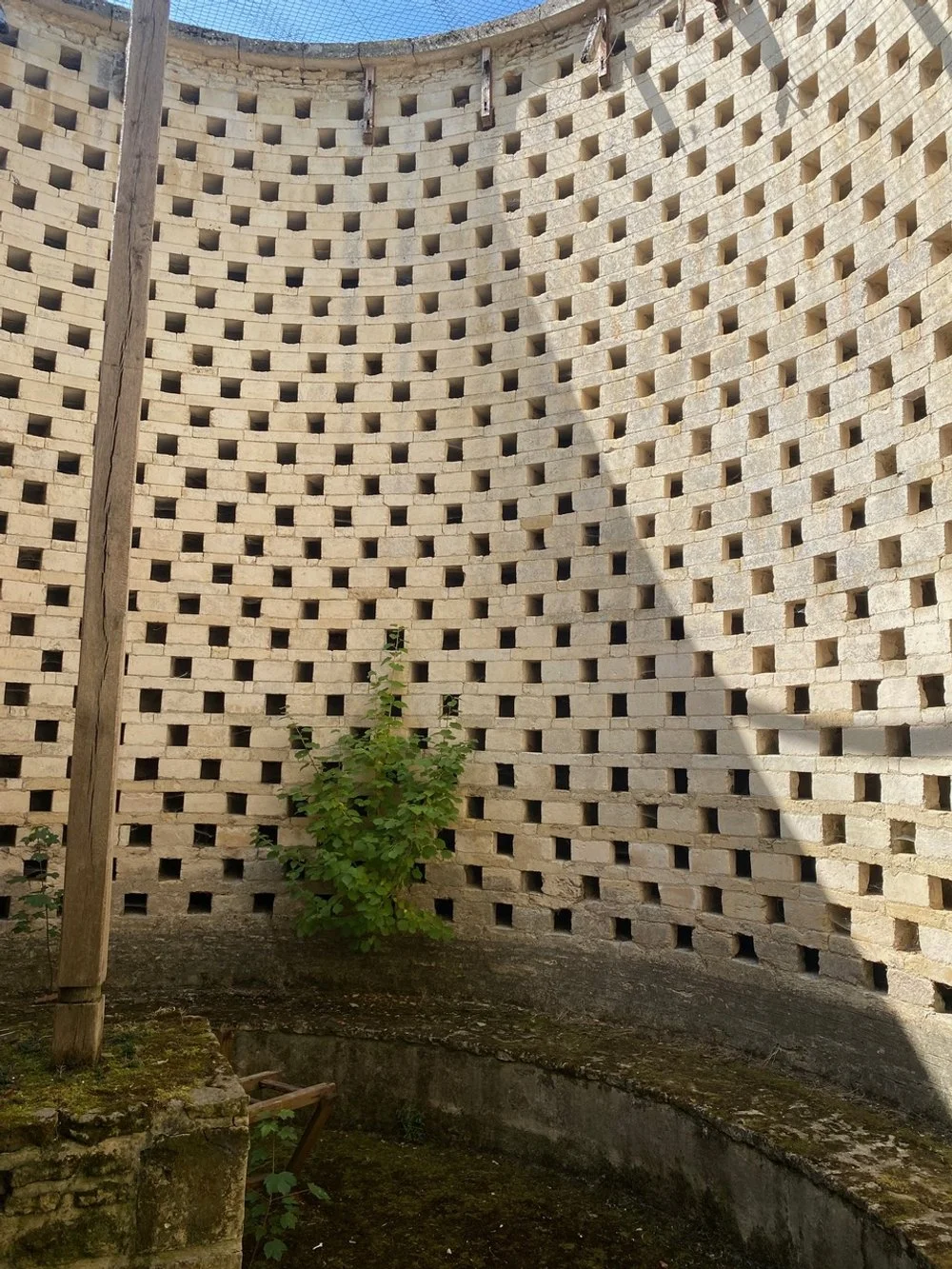 There’s a Utility Garden, the centerpiece of which is a pigeonnier built in 1811. It has 1,400 pigeon holes. That’s not a pigeonnier, it’s a pigeon hotel or maybe apartment building. It has an impluvium roof so that the rain that falls into the central basin gives the pigeons an indoor(ish) or at least private place to bathe. Nearby is is a pyramid shaped building. It’s the icehouse. Ice was collected on very cold days and then kept in the interior well. A double door, facing north, kept it cool.