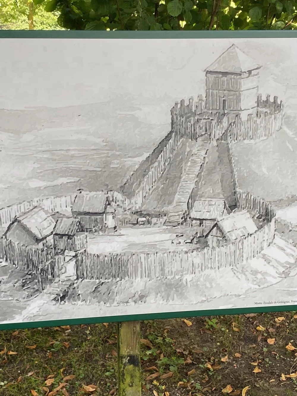The first garden I visited after Étretat whetted my appetite was the Chateau de Boutemont. The history of this chateau is as tortured as the rest of France. Somewhere between the 10th and 12th centuries, the lords of Boutemont built a feudal mound, a stronghold, at the base of the hill, about a hundred meters from the current chateau. A plaque indicates where the mound was and what it looked like. From the chateau you can walk along a path to the ancient Roman road that linked the major town of Noviomagus Lexoviorum (Lisieux in Roman times) to the harbor of Touques, near Deauville.